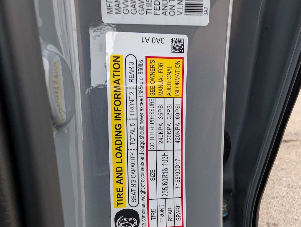 - Front tires: 235/60HR18.0