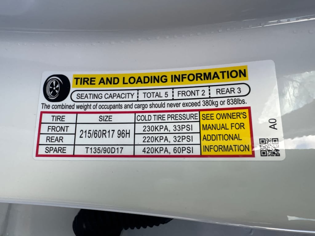 - Front tires: 215/60HR17.0
