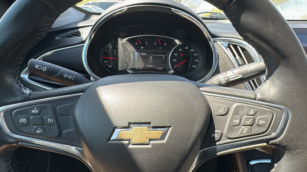 SUNROOF, POWER, TILT-SLIDING with additional skylight fixed glass aft of the sliding glass and sunshade; includes (UG1) Universal Home Remote, CONVENIENCE AND TECHNOLOGY PACKAGE includes (BTV) remote vehicle starter system, (DD8) inside rearview auto-dimming mirror, (KI6) 120-volt power outlet, (UDD) color Driver information Center, (IO5) Chevrolet MyLink Radio, (K4C) Wireless Charging, (USS) dual USB charging-only ports in rear of center console, (N34) leather-wrapped steering wheel and (VY7) leather-wrapped shift knob (Also includes (PZX) 18 aluminum wheels and (R0X) 245/45R18 blackwall all-season tires.), AUDIO SYSTEM, CHEVROLET MYLINK RADIO WITH 8 DIAGONAL COLOR TOUCH-SCREEN, AM/FM STEREO with seek-and-scan and digital clock, includes Bluetooth® streaming audio for music and select phones; voice-activated technology for radio and phone; featuring Android Auto® and Apple CarPlay® capability for compatible phone, ENGINE, 1.5L TURBO DOHC 4-CYLINDER DI with Variable Valve Timing (VVT) (160 hp [119.3 kW] @ 5700 rpm, 184 lb-ft torque [248.4 N-m] @ 2500-3000 rpm) (STD), TRANSMISSION, 6-SPEED AUTOMATIC (STD). Chevrolet LT with Blue Velvet Metallic exterior and Jet Black interior features a 4 Cylinder Engine with 160 HP at 5700 RPM*.