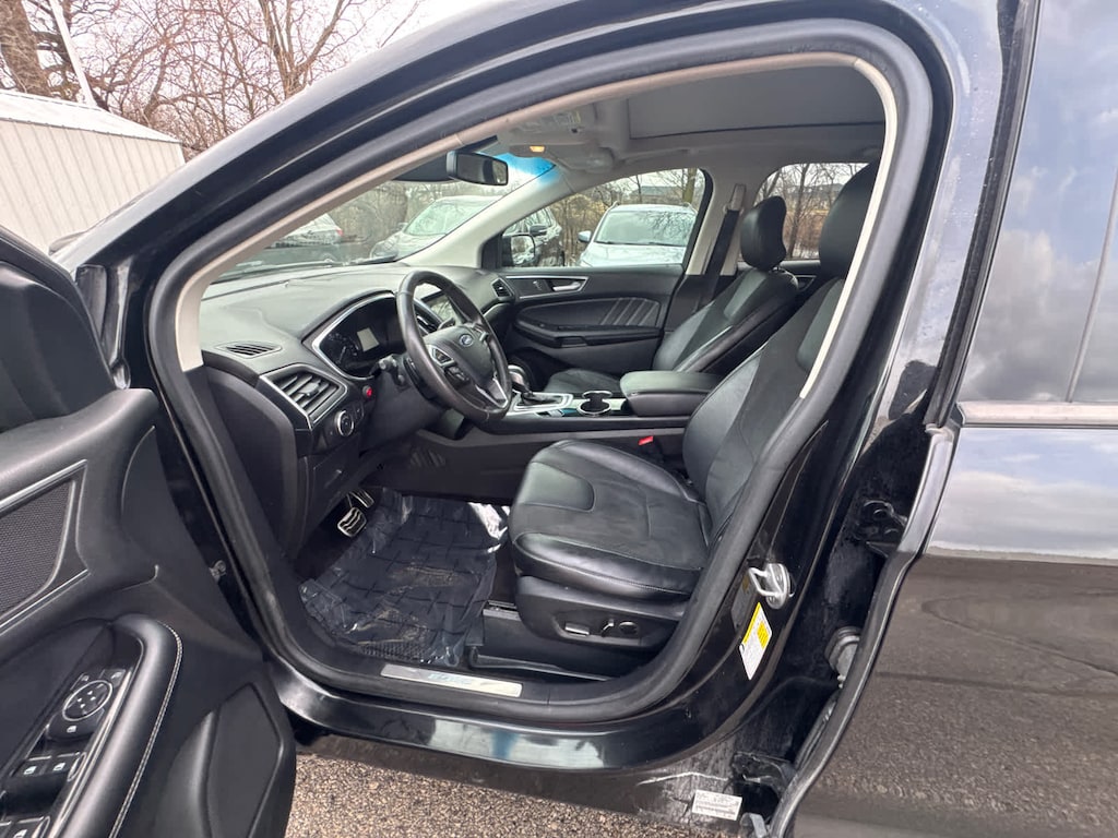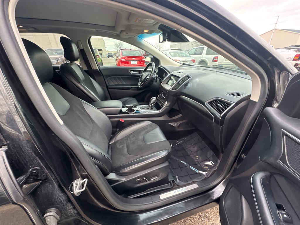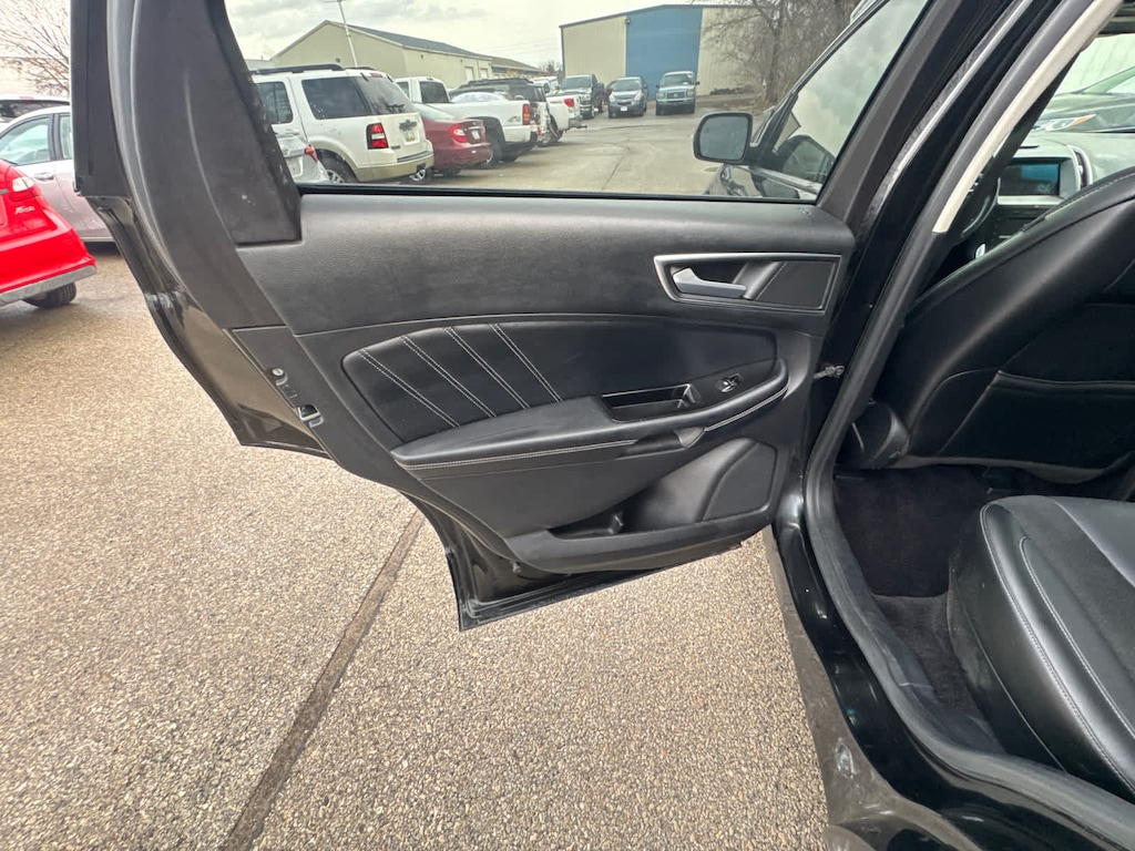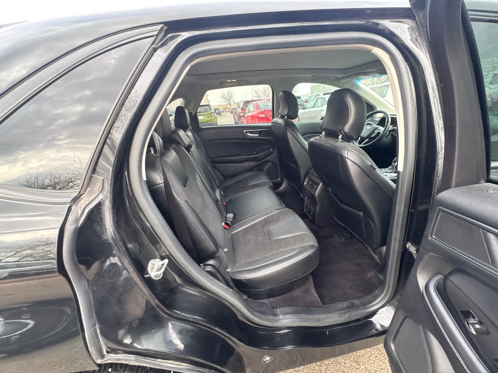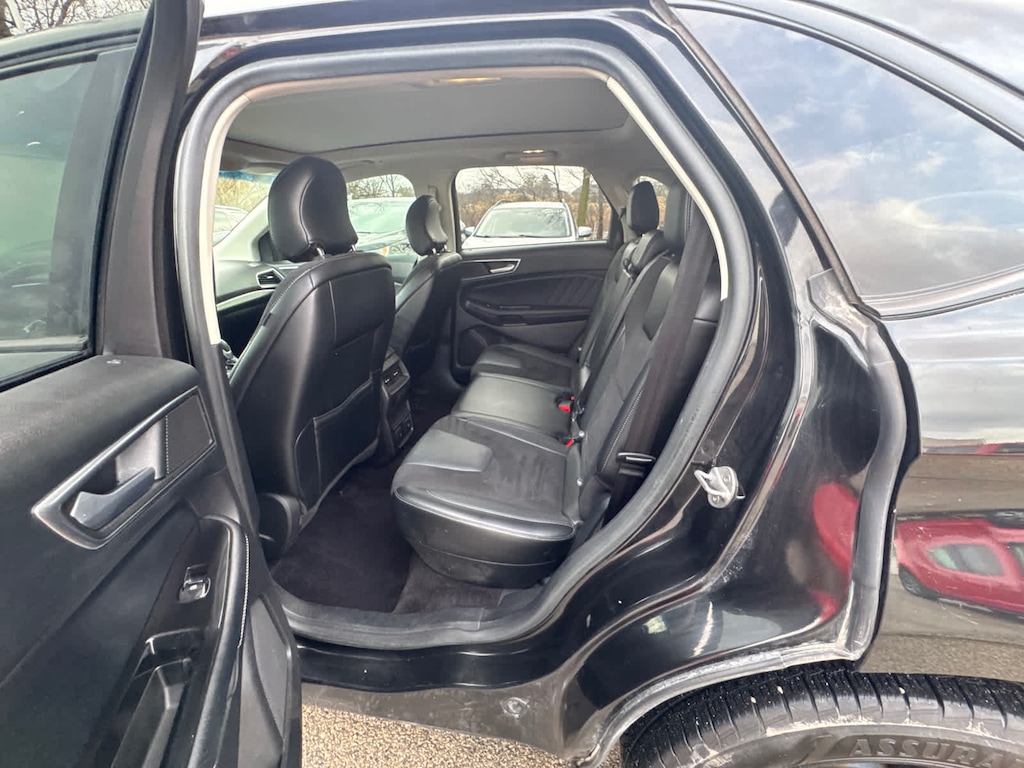 Edmunds.coms review says Front-row occupants sit on supportive bucket seats, and an additional inch of rear legroom provides comfortable accommodations for adults riding in back. The Edge is also wide enough to make three-across second-row seating a viable proposition for families of five.. Great Gas Mileage: 24 MPG Hwy.